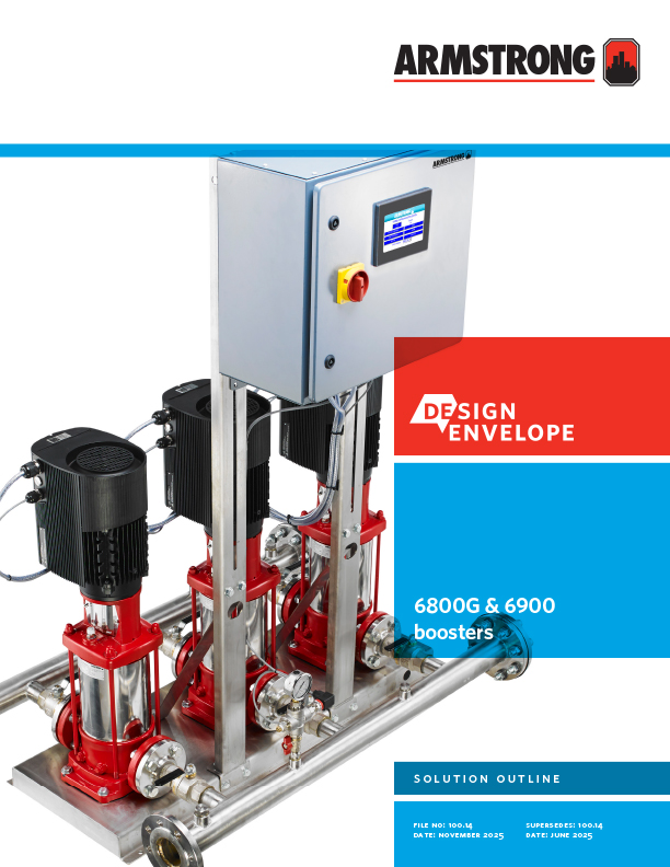 Bei den Design Envelope 6800 Serie von Armstrong handelt es sich um komplett montierte und im Werk getestete Druckerhöhungsanlagen. Sie sind mit mehrstufigen Kreiselpumpen ausgestattet und werden in Konfigurationen mit 2 bis 5 Pumpen geliefert. Die integrierte Regelung ermöglicht eine optimale Leistung und Energieeffizienz innerhalb eines breiten Betriebsbereiches. Sie eignen sich am besten für Anwendungen, bei denen Energieeffizienz, geringer Wartungsaufwand und Platzbedarf sowie der Komfort der Bewohner entscheidend sind.