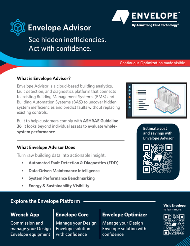 BeschreibungEnvelope Advisor helps facility teams reduce energy consumption, uncover inefficiencies, and maintain optimal system performance all through the Envelope Platform.