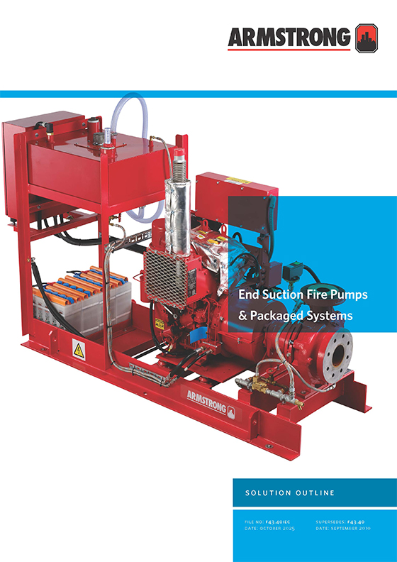 Armstrong HES-Feuerlöschpumpen (horizontale Pumpen mit axialem Eintritt) setzen einen Hochleistungslagerrahmen ein, um einen langen und zuverlässigen Betrieb mit einer überhängenden Laufradkonstruktion (das Laufrad ist auf dem Ende einer Welle montiert ist, die über ihre Lager hinausragt) zu gewährleisten. Dieses Format eliminiert die Konstruktionsbeschränkungen, die durch horizontale Pumpenkonfigurationen mit geteiltem Gehäuse entstehen.