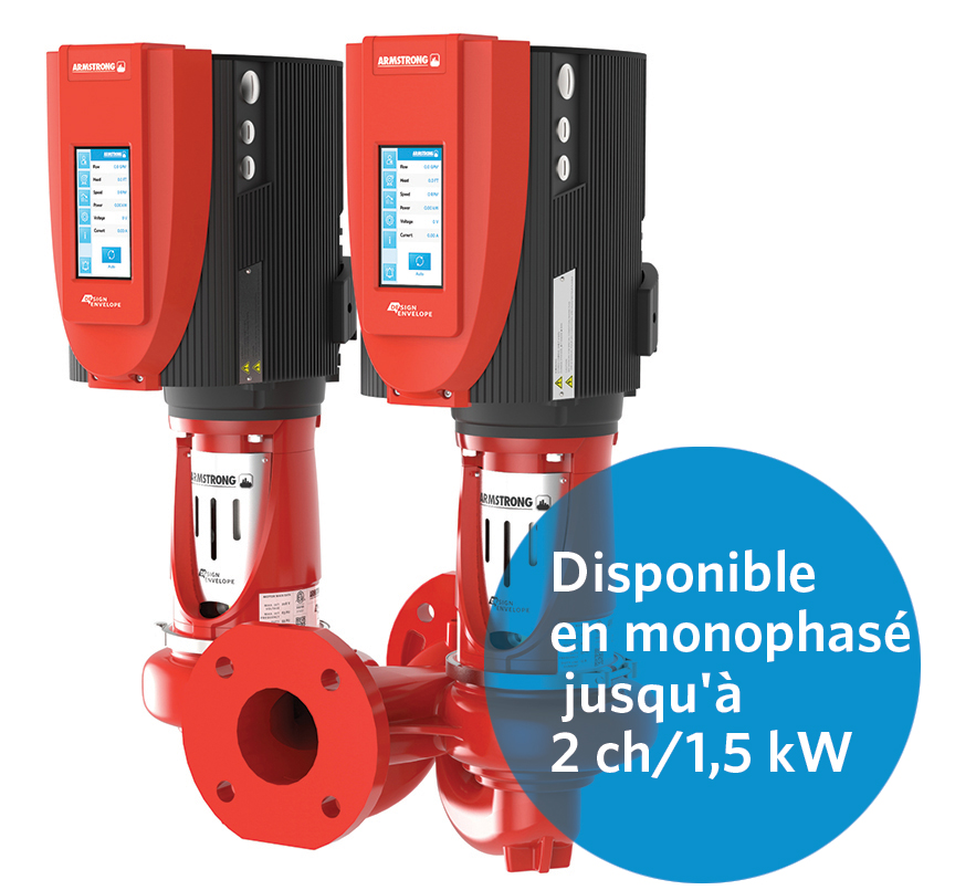 Ensemble de 2 pompes monté sur tuyauterie avec contrôles intelligents intégrés, offrant un gain d’espace lors de l’installation, un rendement énergétique supérieur et un fonctionnement en pompage parallèle ou en redondance totale. Permet d’économiser jusqu’à 75 % d’énergie par rapport à des installations de pompage classiques comparables fonctionnant à vitesse constante ou à fréquence variable. Services distants par Internet pour améliorer la fiabilité et garantir un rendement optimal pendant toute la durée de vie des pompes.
